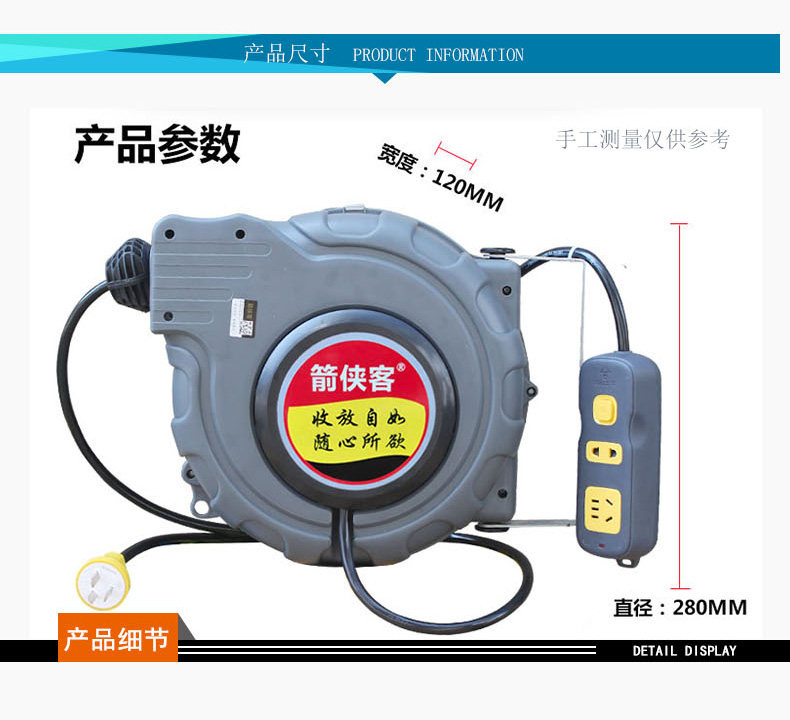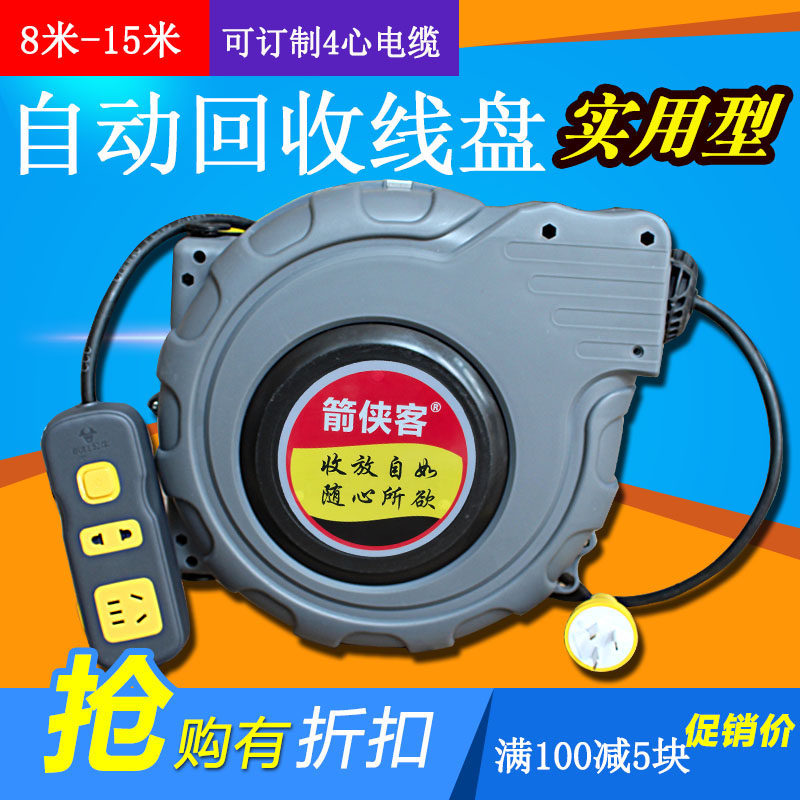 Automatic telescopic wire disc recoder spool electronic drum 15 m take-up power supply disc line drum-drain plug socket plug-in