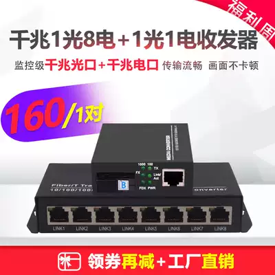 Gigabit 1 optical 8 Electrical fiber transceiver single fiber dual fiber 1 optical port 8 Electrical port optical fiber switch photoelectric converter