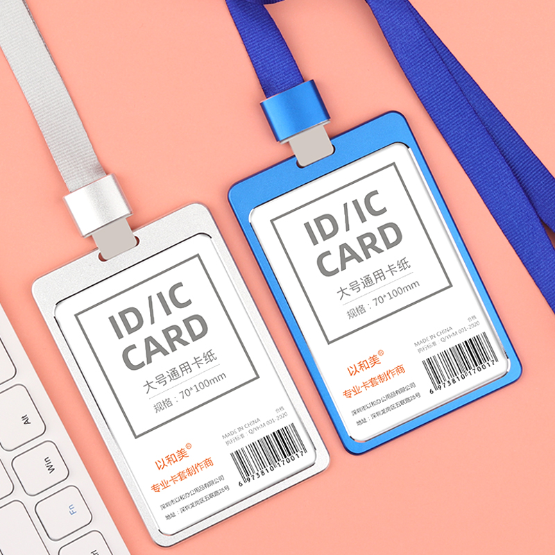 Large aluminum alloy card set work card badge guide card lanyard metal transparent certificate set custom 7*10 work card work number card employee work card listing custom tag