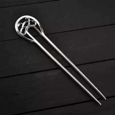 Retro National style hair ornaments hollow flower U-shaped hairpin hair fork women's style walking plate hair Miao silver Korean female gift