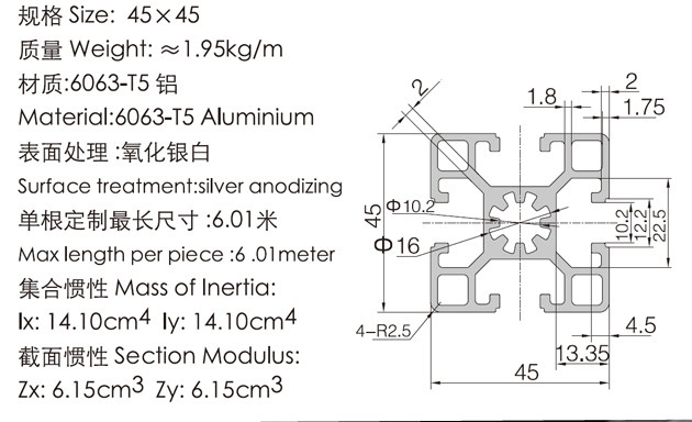 European standard industrial aluminum profile 4545 aluminum profile 4545 aluminum alloy profile aluminum square tube aluminum profile 2.0 thick profile