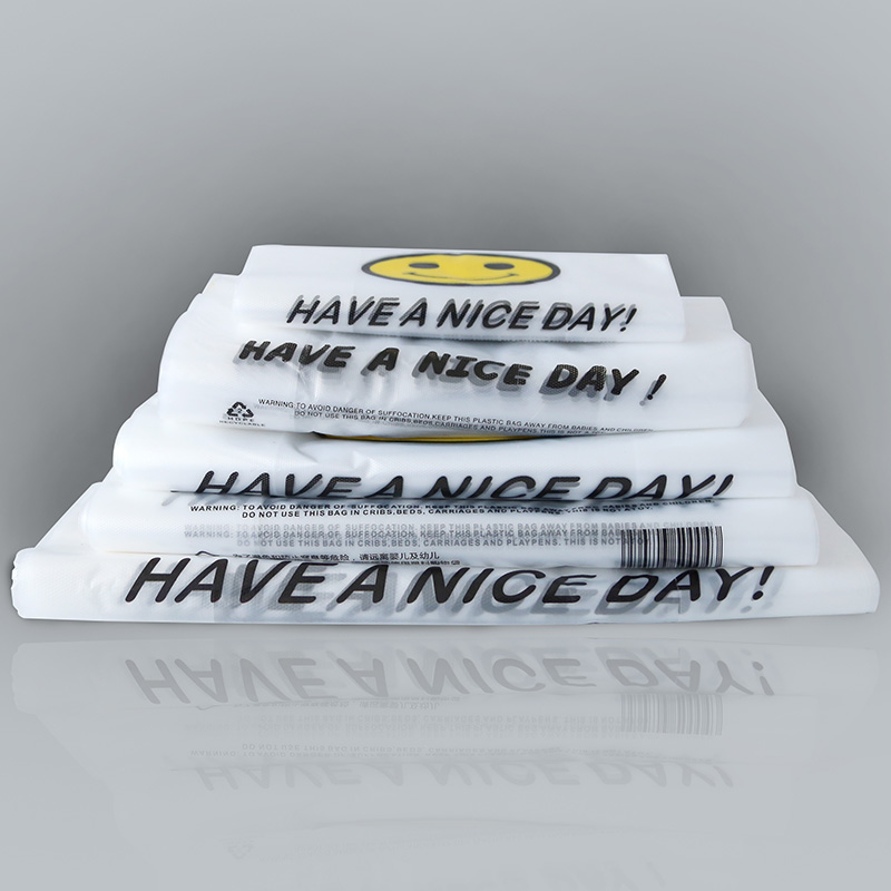 3 silk 30*48 smiley face portable vest bag plastic supermarket shopping vest bag transparent packing convenient bag