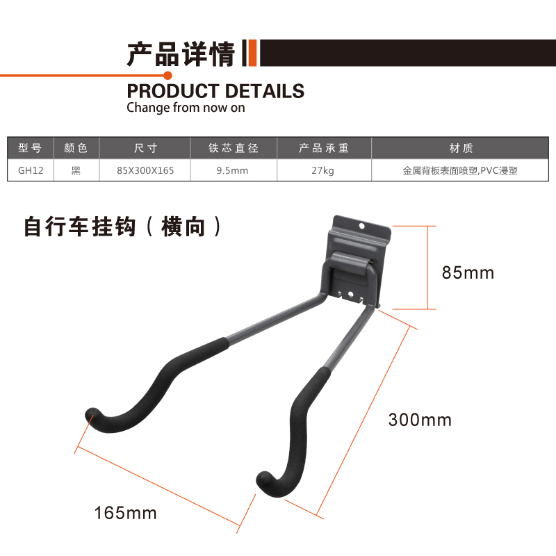 Heavy duty bicycle wall hook Mountain bike storage rack Metal wall slot board hook Garage storage hook