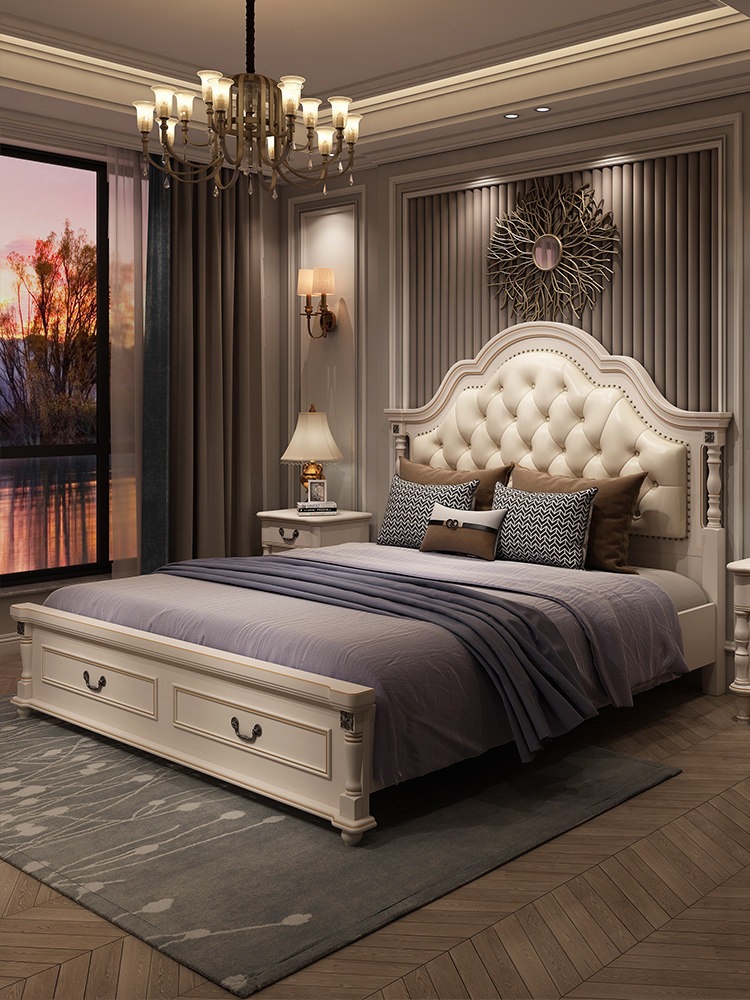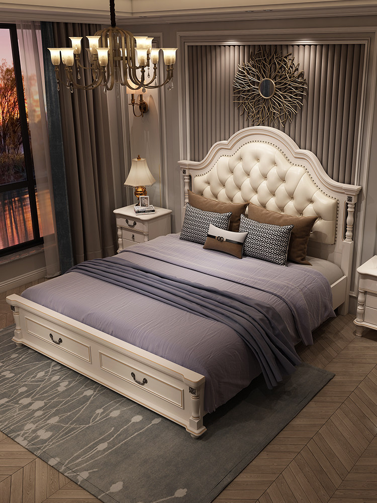 Bedroom furniture combination set wedding room complete set furniture full bed wardrobe master bedroom solid wood six pieces set wedding whole house