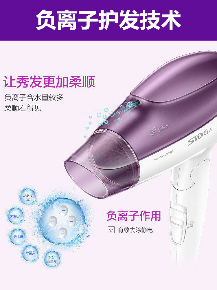 SID Superman hair dryer RD1822 hair dryer high power 2000W hair salon household negative ion folding