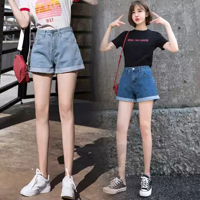 2021 new summer retro high waist denim shorts women's wide legs loose casual A thin Korean hot pants