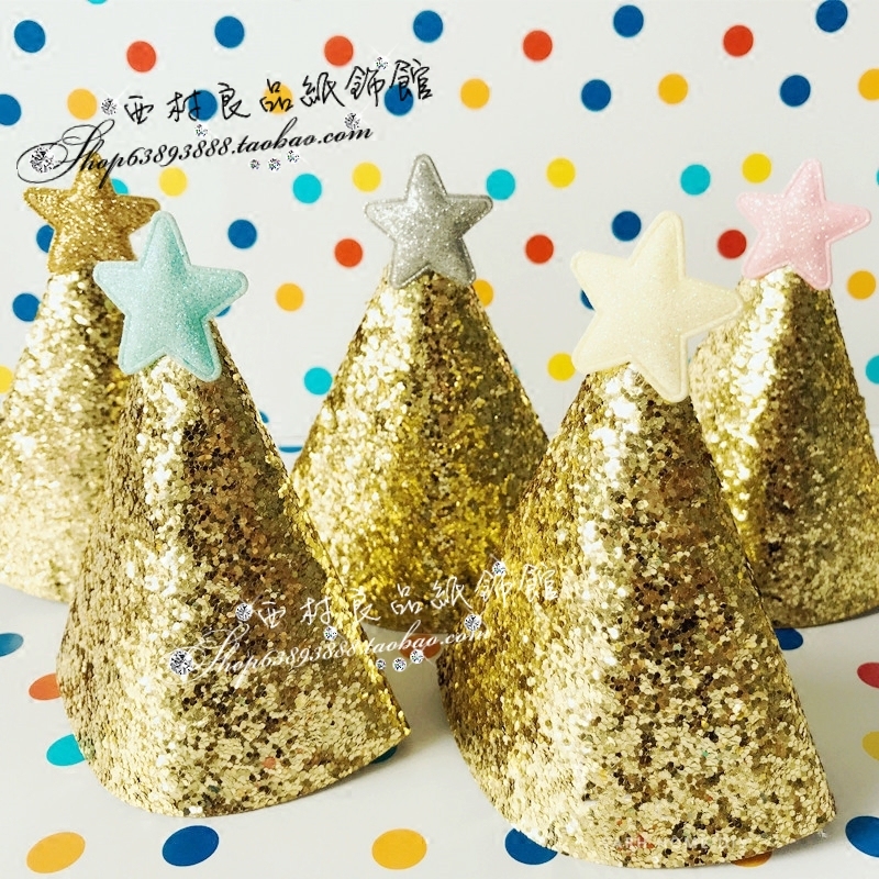 5pcs Korean buling gold sequined party hats Christmas children Adult Birthday small pointed hat headdress