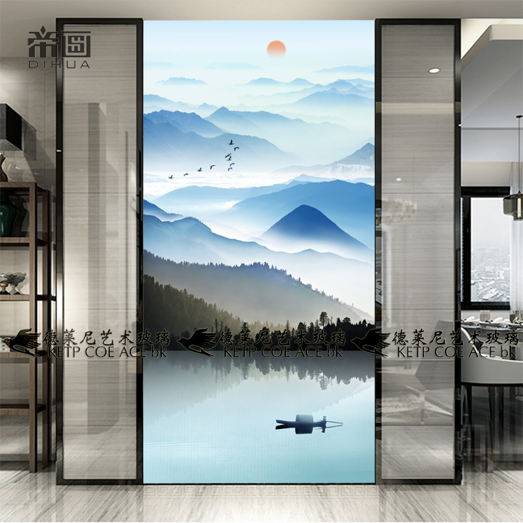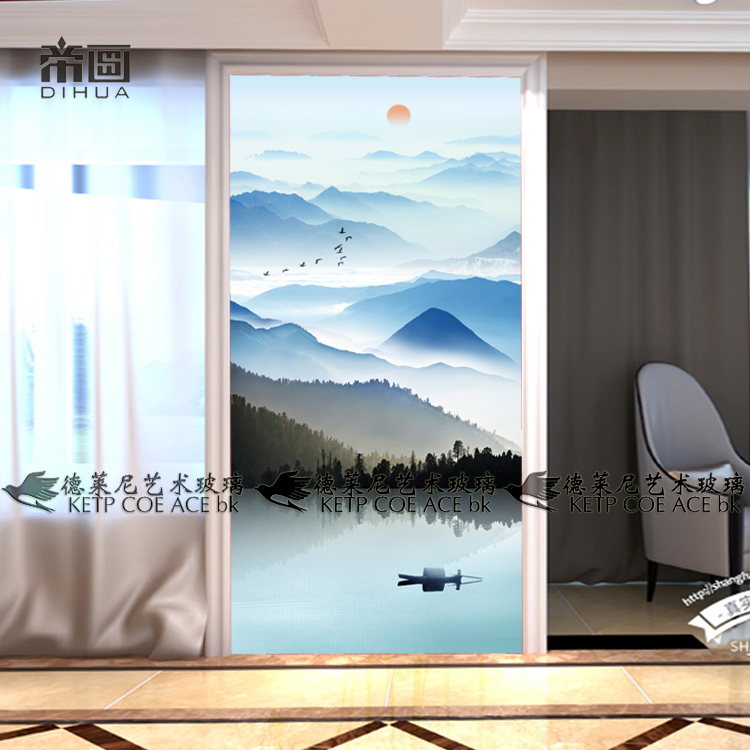 Art glass light and luxurious decorative screen partition into the family Xuanguan background wall frosted light transmission bifacial abstract landscape painting