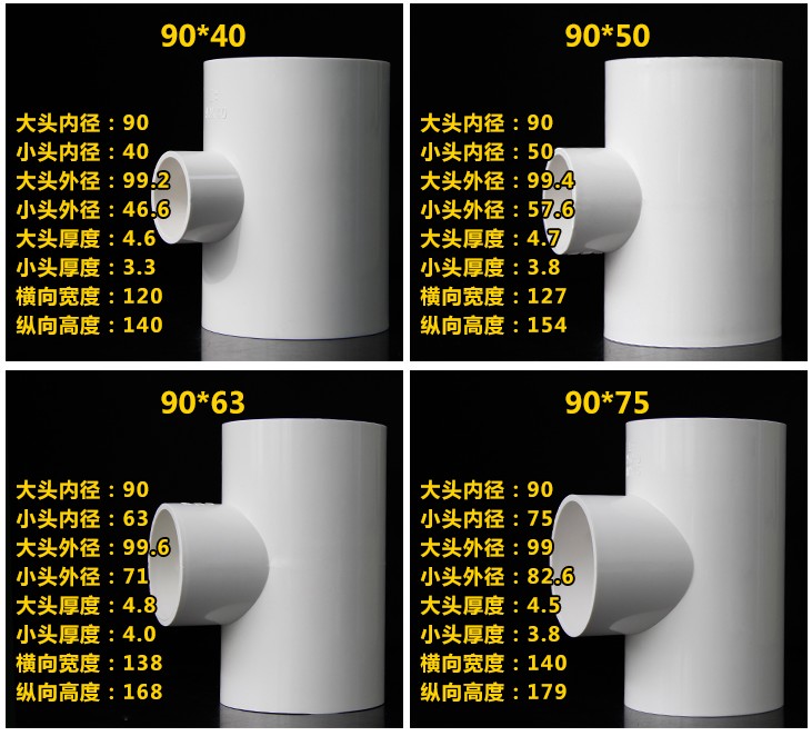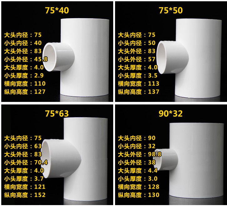 PVC three-way reducing water supply pipe 40 50 63 75 90 110 125 160 200