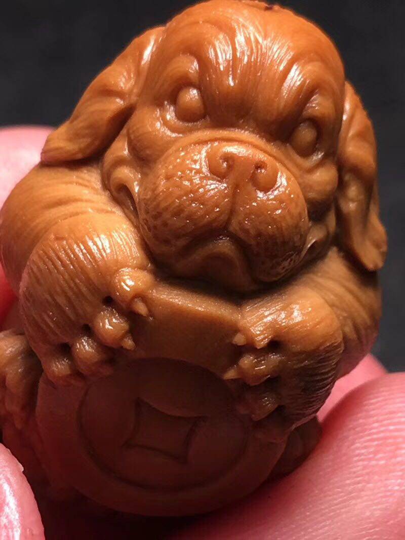 Su Gong pure manual nuclear carving master this work vertical carving boutique puppy olive core carving