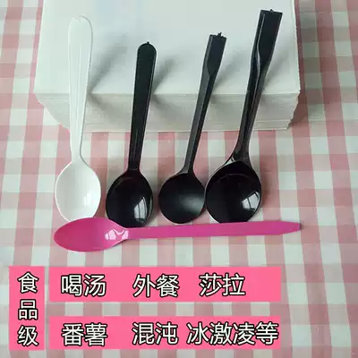 Disposable delivery spoon High-end thickened black spoon Big head spoon Rice spoon Dessert spoon roasted grass spoon Drinking spoon