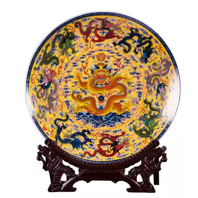 Jingdezhen Ceramics Hanging Plate Decoration Plate Kowloon Figure Living Room Wine Cabinet Bogul Home Decoration Ornaments