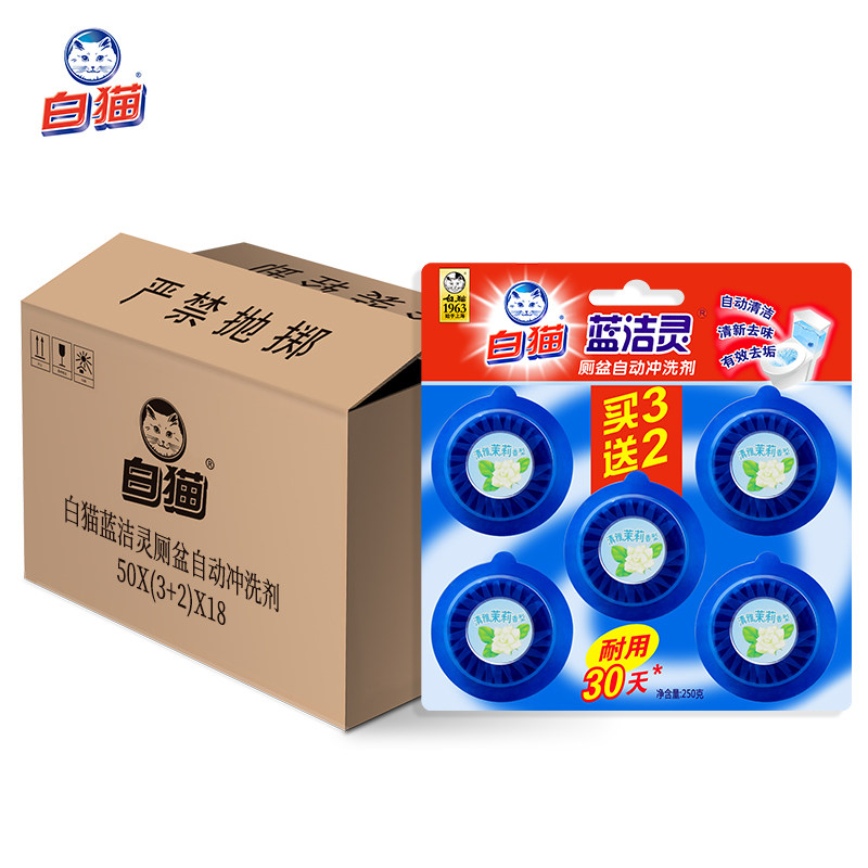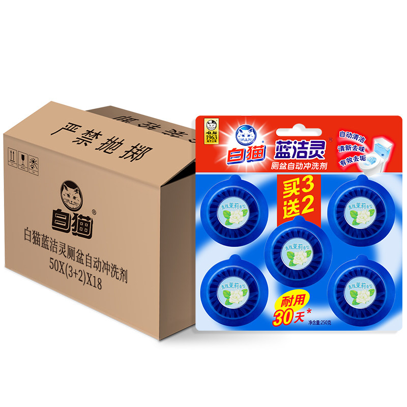 White cat blue and clean toilet automatic flush agent 50g*(3 2)*18 card full box durable blue bubble sterilization and durable durability