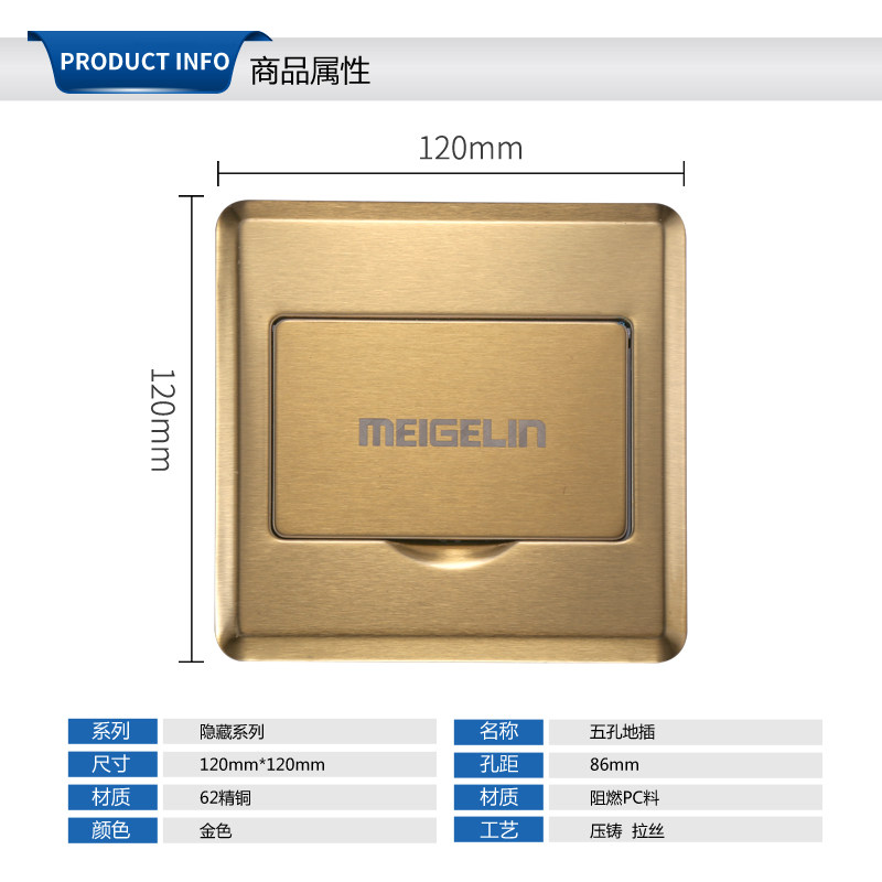Hidden ground plug full copper thickened waterproof five-hole ground plug-in ground floor power socket clamshell type two or three 5 holes