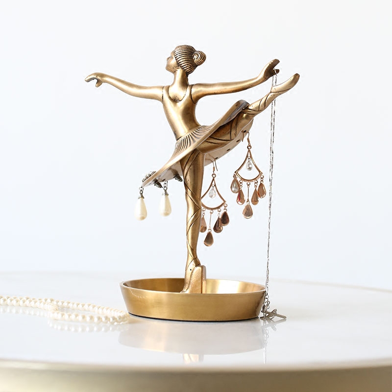 Nordic India Import brass Ballet dancers Jewelry Racks American Retro Show Shelf Pure Bronze Ornament Containing Pendulum