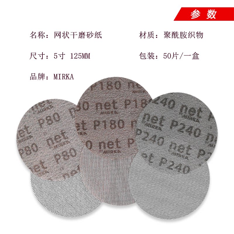 MIRKA5 inch 125MM mill card dust-free grid sandpaper flocking disc anti-clogging and dust suction dry grinding moka
