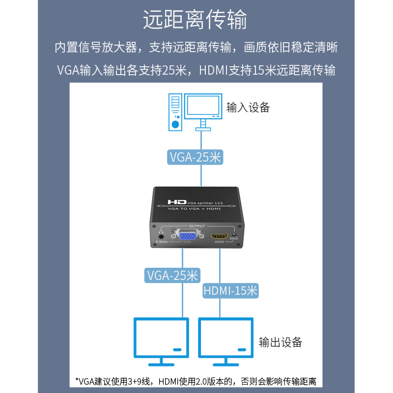 VGA turn HDMI VGA conversion head line with audio 10% Two computer to pick up the display projector output at the same time