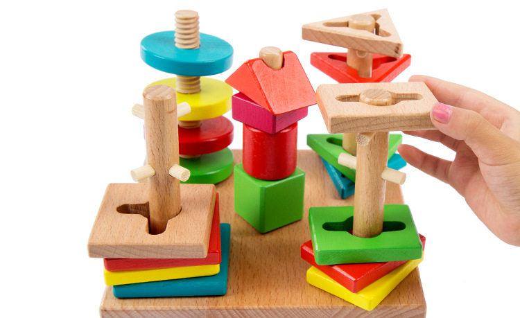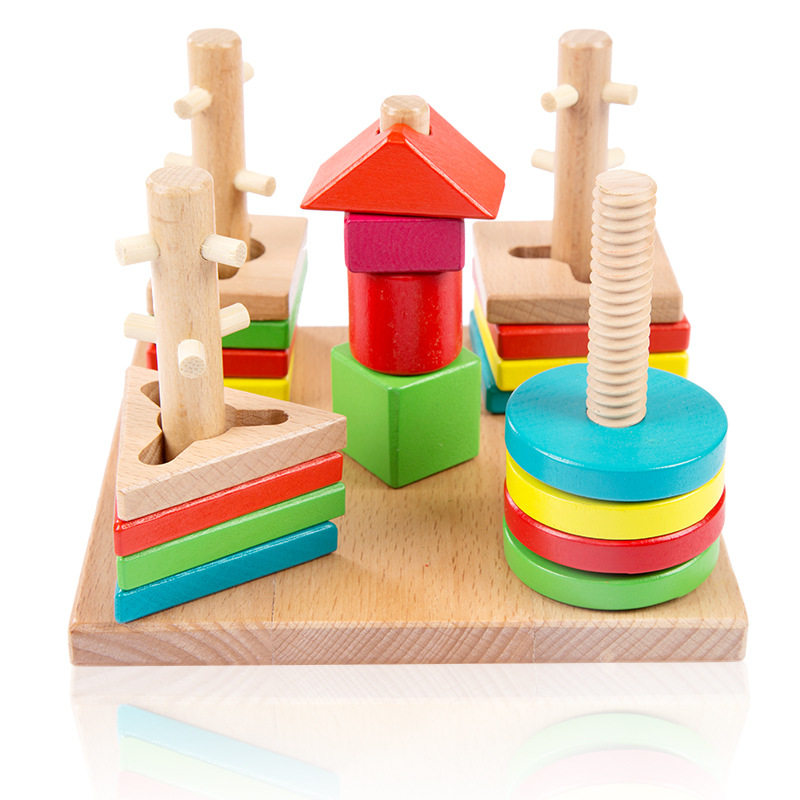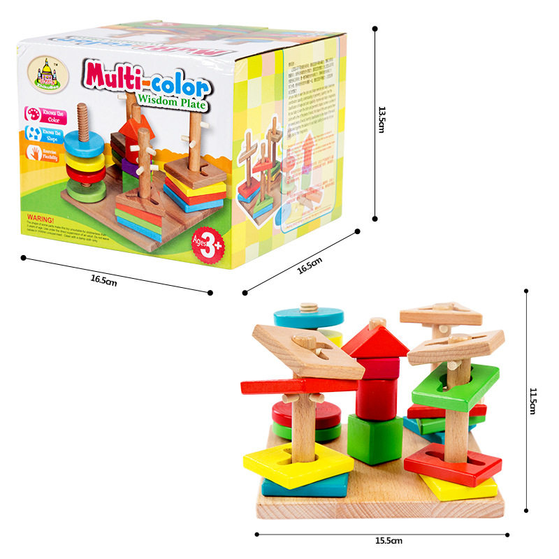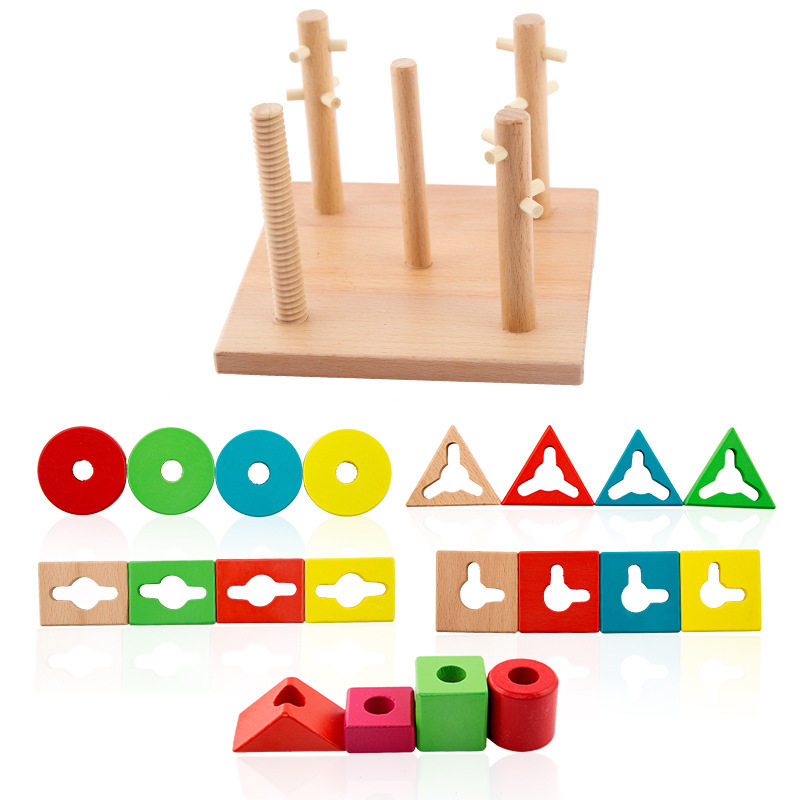 Geometric Shapes Sleeve Studs Children Wooden early teaching Puzzle Building Blocks Toys Baby Cognition Pairing 2-3-year-old Game