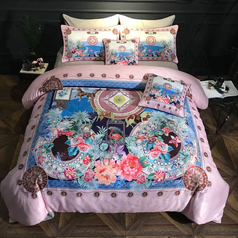 European bed Cotton satin four-piece bed pack Jacquard duvet cover Digital printing Pure cotton bed single bed Li spring and summer six-piece set