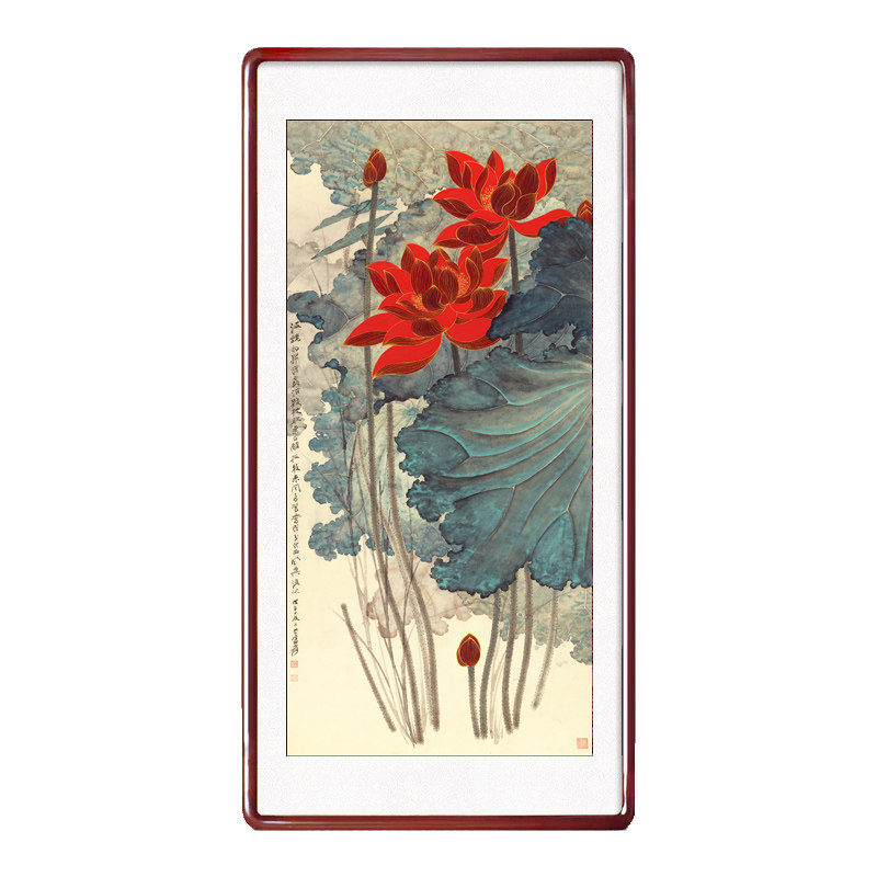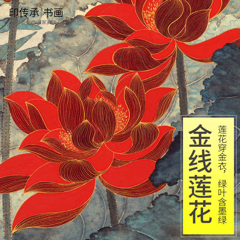 Lotus mandarin duck Gillian Youfu (green leaf raw ink)Blue plate Cailian (golden thread lotus) Nine fish figure