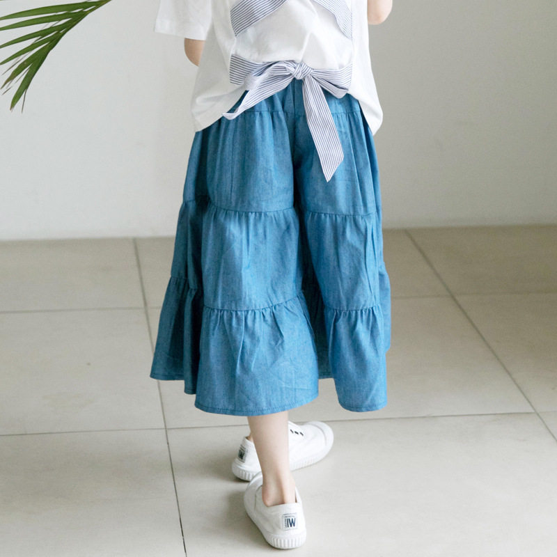 Girl Wide Leg Pants Korean Version Pants Summer CUHK Child Pure Cotton Denim Loose 90% Skirt Pants 100 Lap Casual Pants