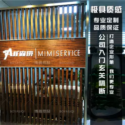 Company screen partition LOGO porch entrance office entry wooden grille new Chinese style Company entrance feng shui Wall