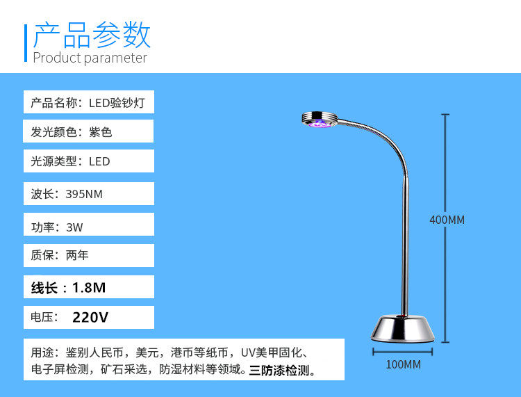 LED Banknote Counting Table Lamp 395 Purple Light Light Lamp Without Shadow Glue UV Mechia Solidify Lamp Fluorescent 3 Anti-Lacquer Detection
