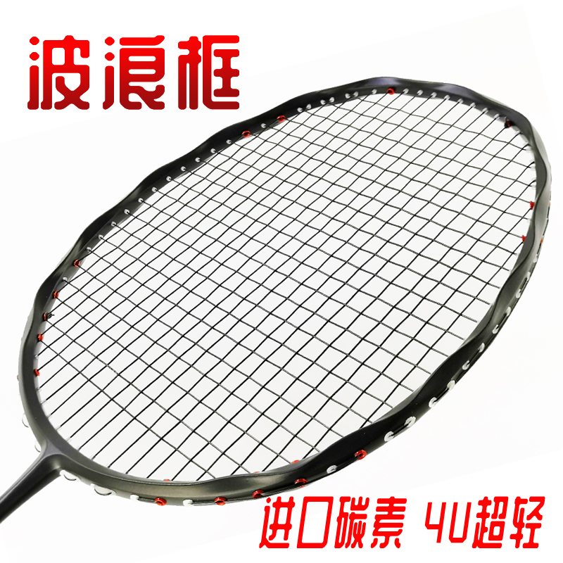 Full Carbon Badminton Racket Single Beat wave frame Carbon fiber 4U ultralight offensive type training for high-pound