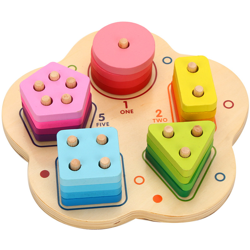 Children's building blocks Wooden geometric shape matching set of columns Male and female babies 1-2-3 years old educational early education cognitive toys