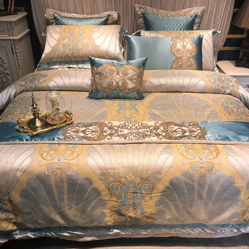 Eurostyle high precision brocade four pieces of tribute satin jacquard long suede cotton villa embroidery 1 8 bed for supplies of a dozen sets