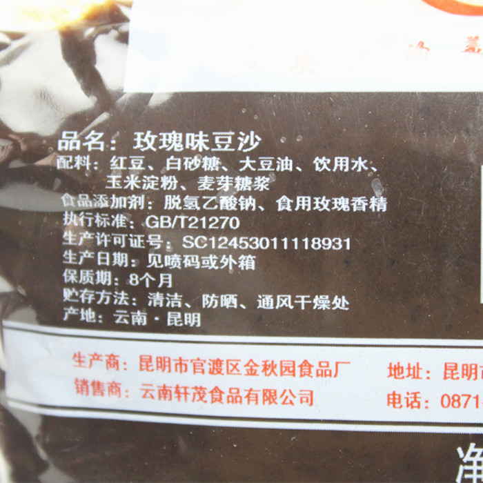 Rose red bean paste 500g * 5 bags Yunnan special-producing mooncake filling bread green bean pastry egg yolk crisp baking raw material