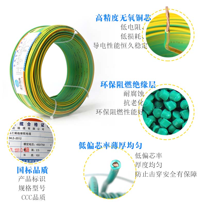 Zinda Wire 4 Squared Single Core bvr1 5 2 56 Squared Copper Core Wire Single Stock Power Cord National Standard Foot