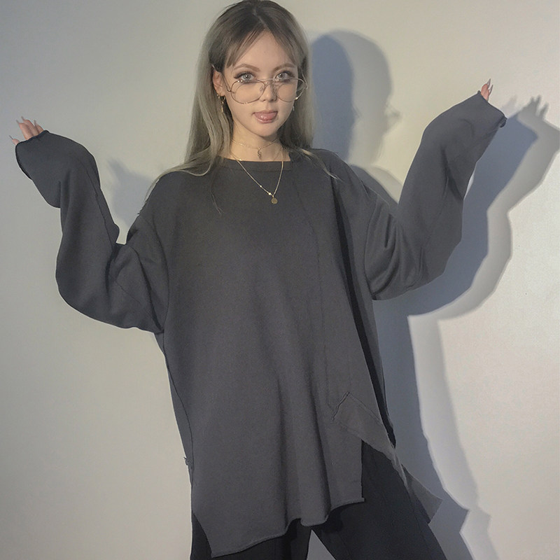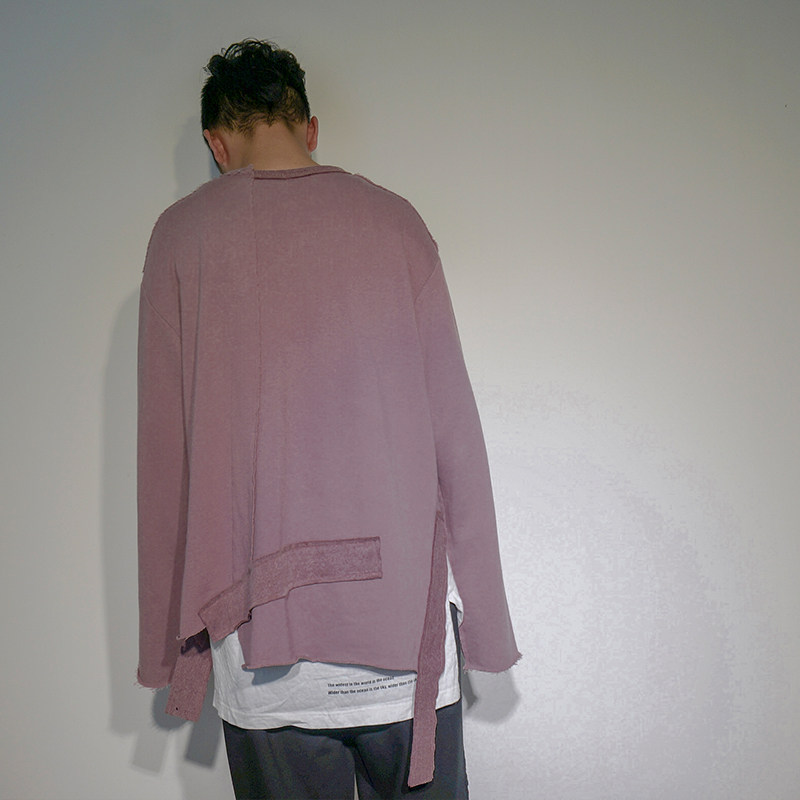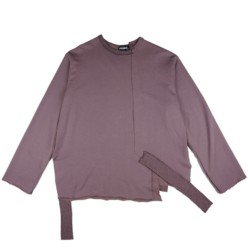 STREAMLET:Ribbon Oversize Sweater Loose Streamers Crew Neck Thick Cotton T High Street Long Sleeves