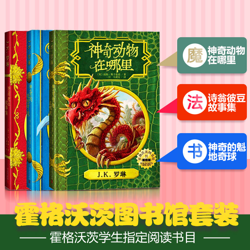 Hogwarts Library Suite (3 volumes) (English) J K Rowling's book Ma Ainon translator and other children's literature young children Xinhua Bookstore is on the map Books People's Literature Press