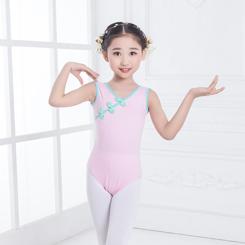 Summer dance practice Dancing Body Test Class Conserved Children Pure Cotton Short Sleeve Girl Basic Work Conjoined Gymnastics Suit-Taobao