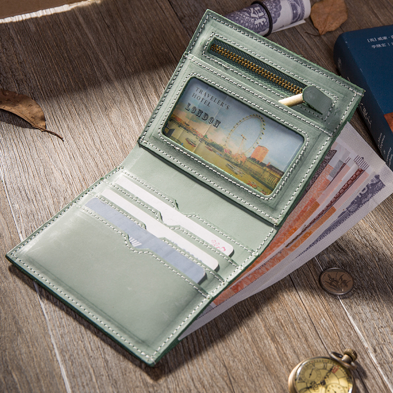 New handmade cowhide zipper retro leather wallet handmade vertical wallet waxed leather clip