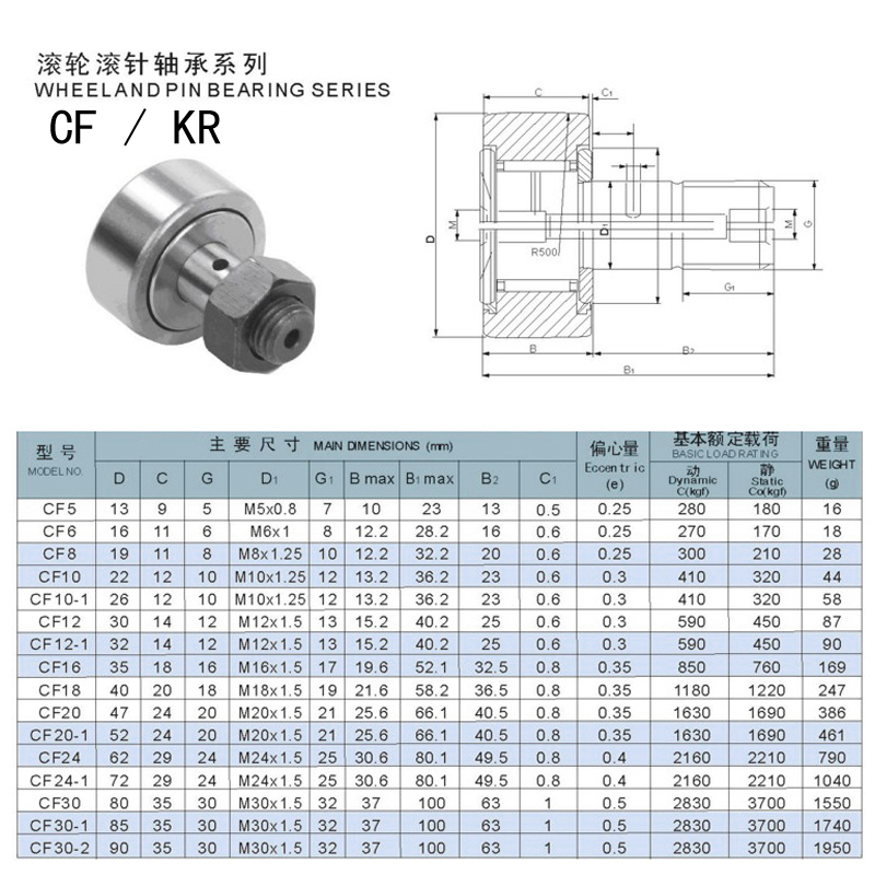 Bolt rollers KR CF 3 4 5 6 8 10 12 12 20 20 18 24 32 35 35 bearings