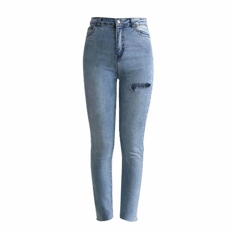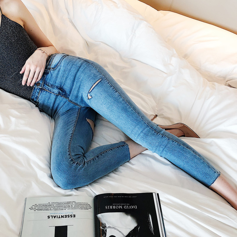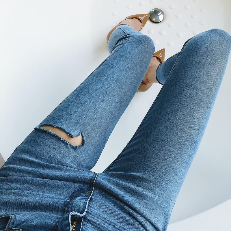 liviahome must-see fit 100 hitch cut with slim height waist tight front and rear breaking hole washed denim smoke pipe pants woman