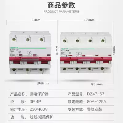 Zhuo Teng electric circuit breaker air opening DZ47 - 3P4P D type 100A 125A air switch main gate