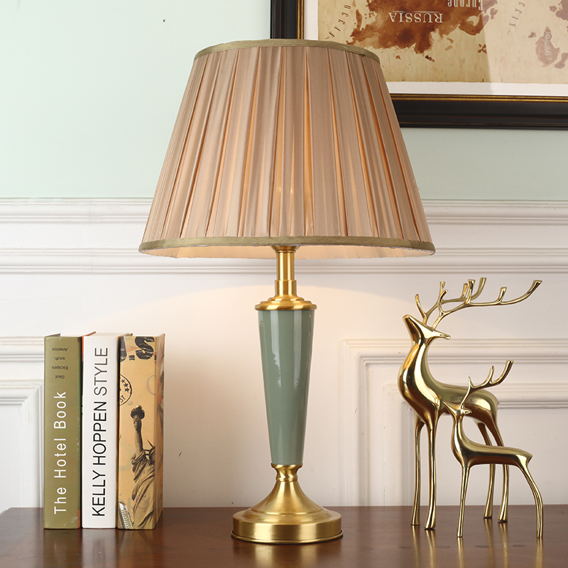 European-style all-copper ceramic table lamp luxury villa palace American retro living room study bedroom bedside decorative table lamp