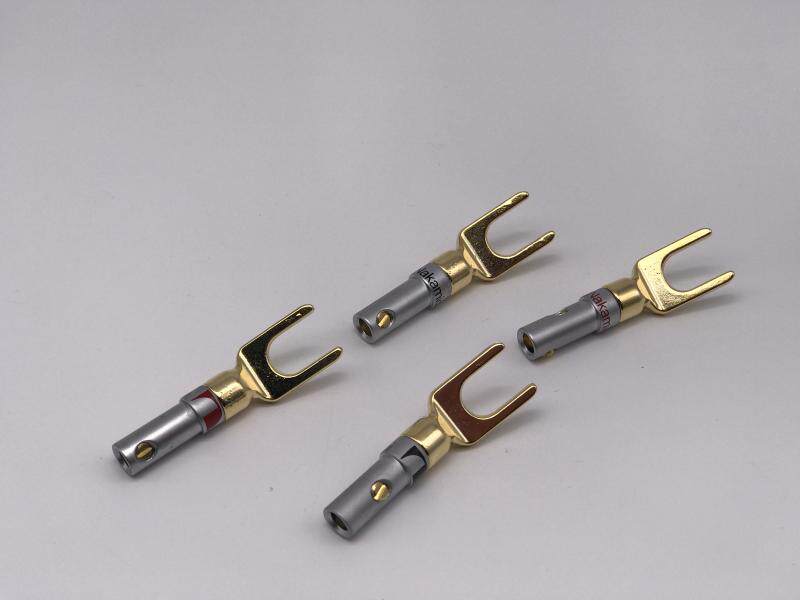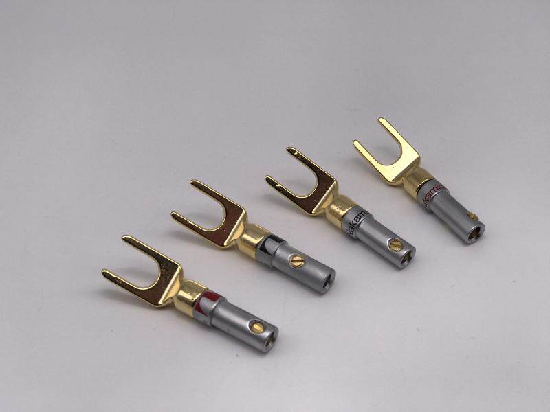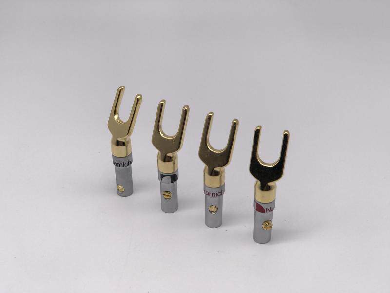 Taiwan NAKAMICHI SPEAKER WIRE JUMPER PURE COPPER GOLD PLATED PLUG HORN WIRE Y-INSERT HEAD FREE OF HEAT-SHRINK TUBE