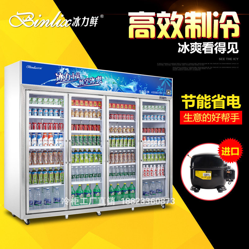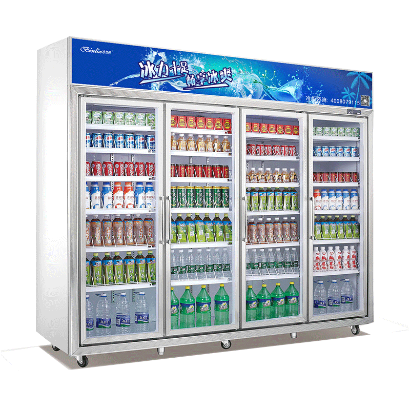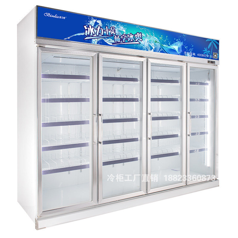 Ice Force Fresh Convenience Store Drinks Cabinet Four Doors Freezer Drinks Refrigerated Display Case Vertical Freezers Fruit Crisper