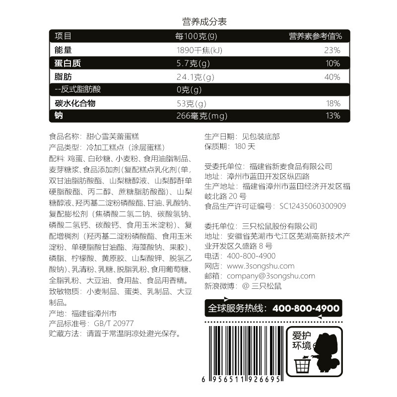 (Three squirrels _ Chevalier cake 1kg)Bread Whole box Breakfast Healthy snacks Recommended meal replacement Full belly