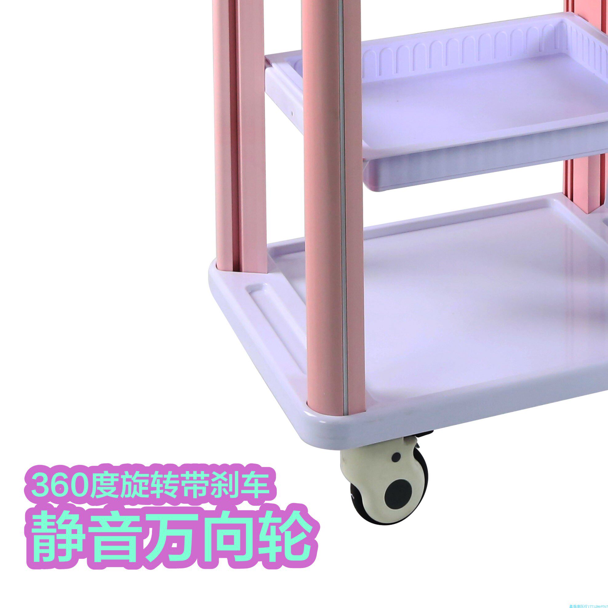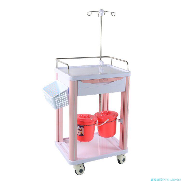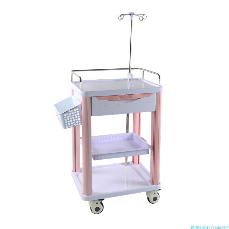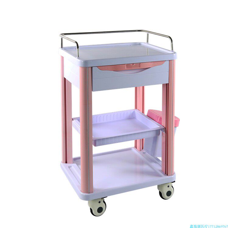 Hospital three - layer delivery car ABS plastic cart medical surgical equipment vehicle multi - functional care car pink
