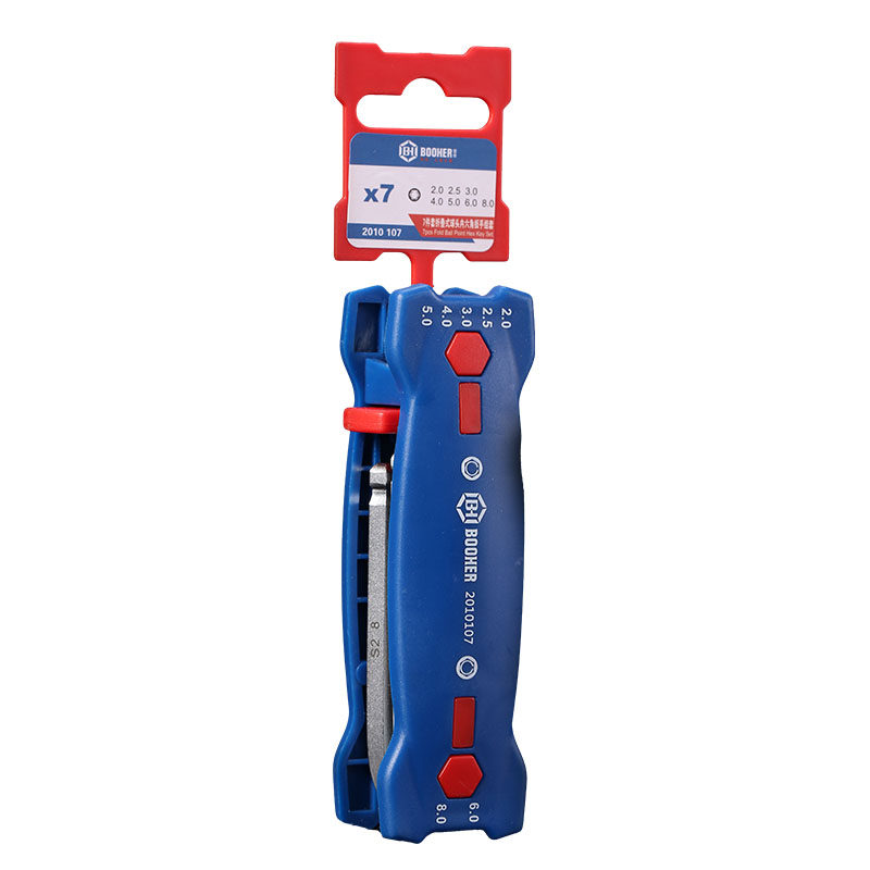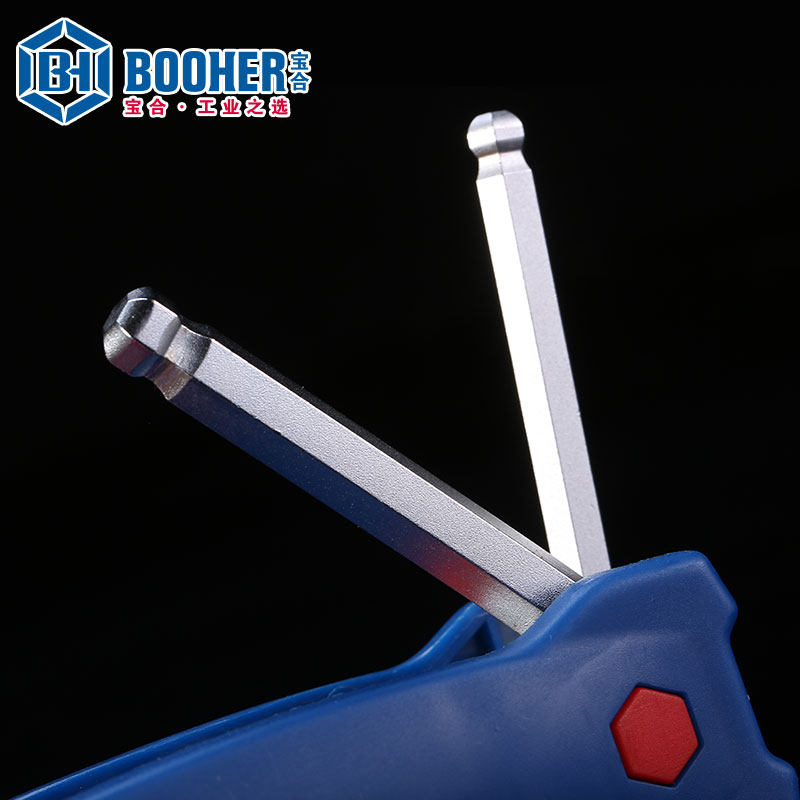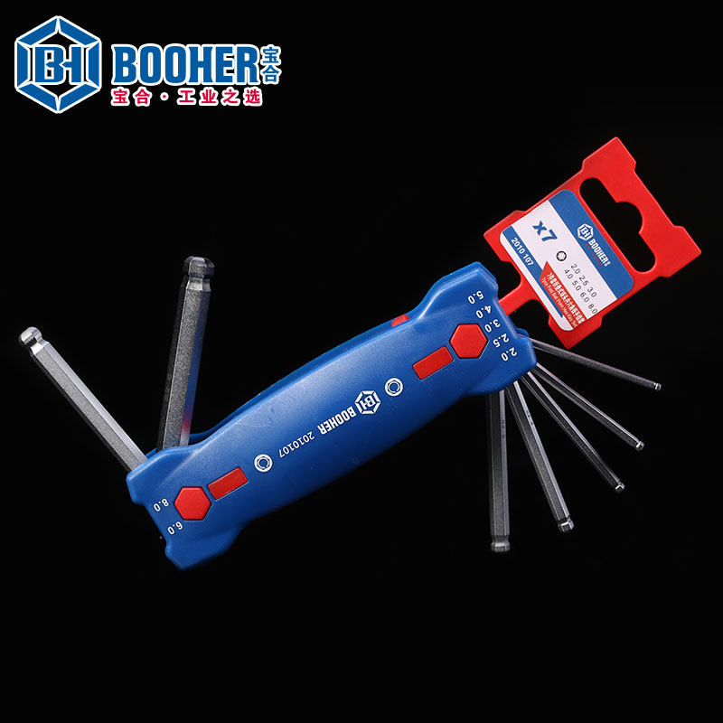 Booher Baohe Tools 7-Piece Folding Ball Head Allen Wrench Set Matte Chrome