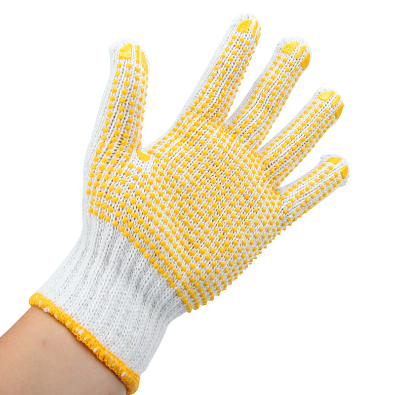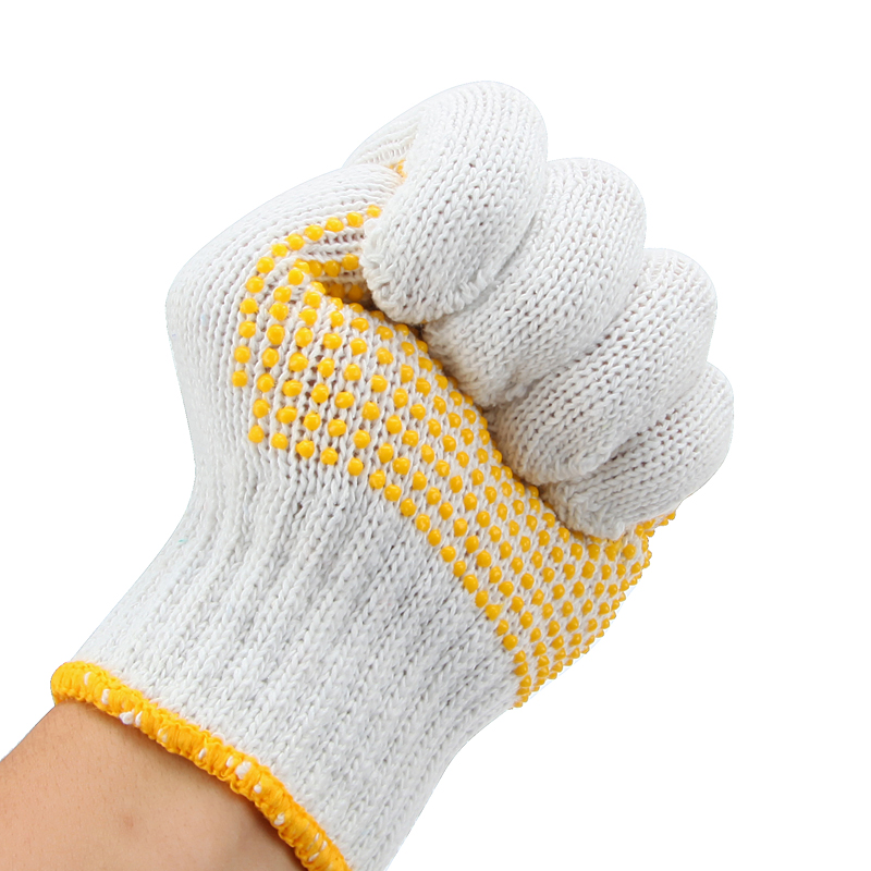 Saituo labor protection gloves cotton yarn tug-of-war non-slip wear-resistant point plastic gloves Labor Labor site work White line hand