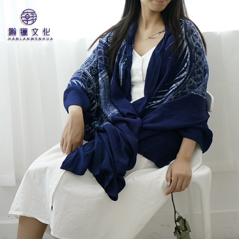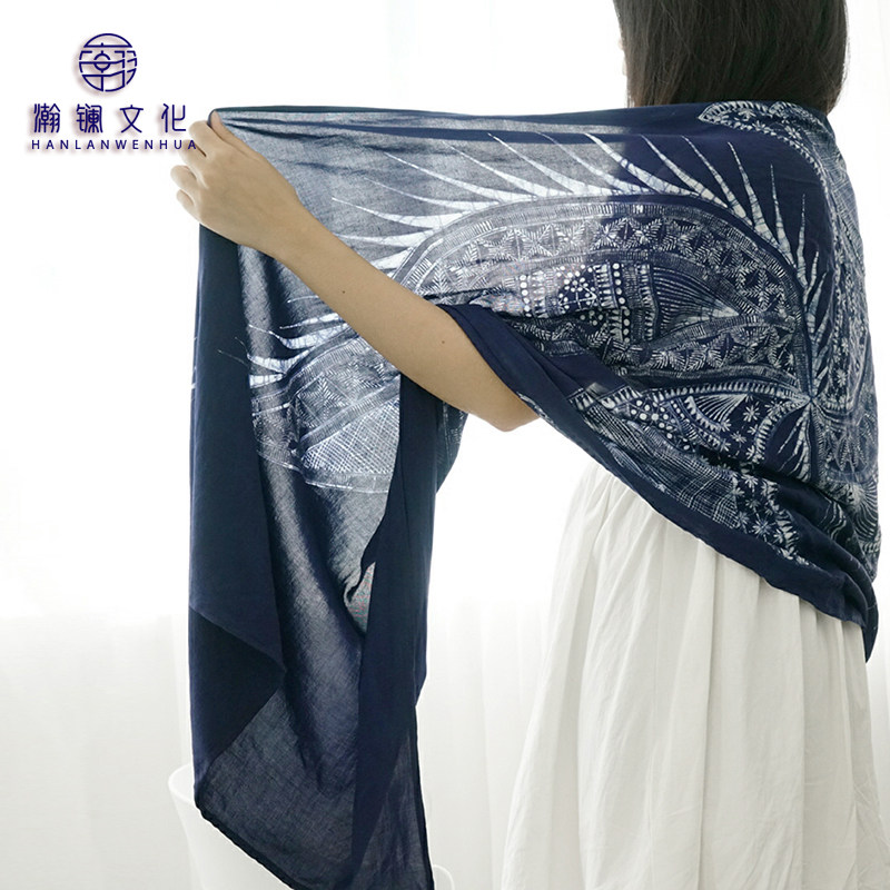 Pure Natural Plant Dyeing Handmade Miao Batik Scarf Silk Scarves for Ethnic Minorities Featured Handicraft
