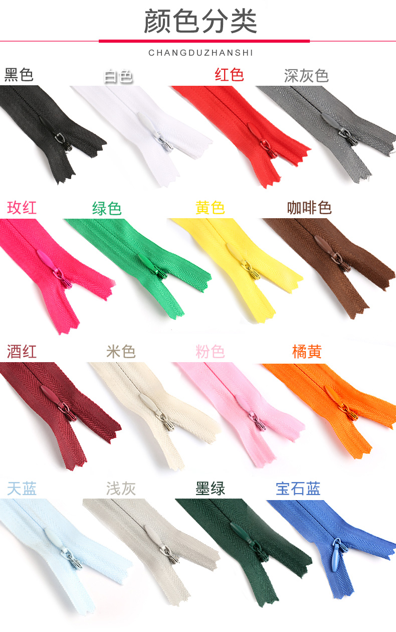 Invisible zipper black and white dark chain pillow 60cm lian yi qun zi zipper accessories pants zipper accessories