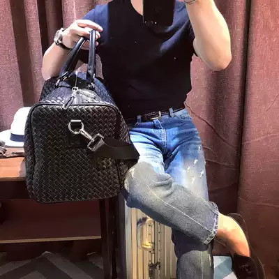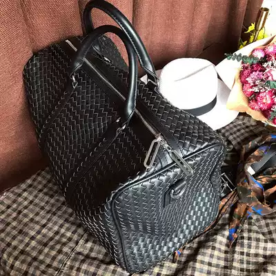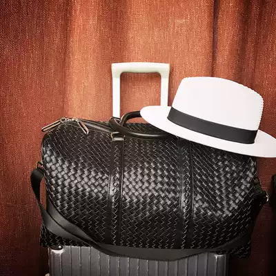 Mr Lu San hand-woven PU leather travel bag Portable duffel bag large capacity men's and women's casual retro shoulder bag