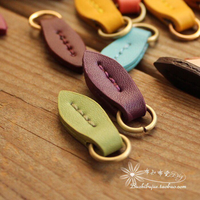 Small Leaves Genuine Leather Laced Sheet Hand Sewn Pull Chain Head Clothing Bags Accessories BAGS PENDANT PULL PIECES PJ028-030
